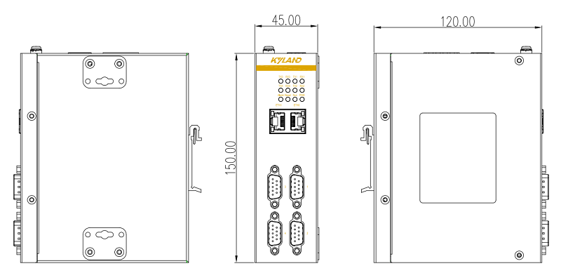 | 機(jī)械結(jié)構(gòu) | 外殼:金屬材質(zhì) 產(chǎn)品尺寸: KGW3204A:45×150×120mm(W×H×D) KGW3408A:79×150×120mm(W×H×D) 散熱方式:自然冷卻,無風(fēng)扇 防護(hù)等級:IP40 安裝方式:壁掛,導(dǎo)軌 |