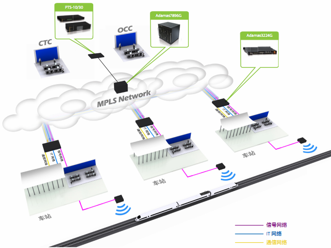 傳統(tǒng)鐵路通信骨干網(wǎng)通過SONET/SDH或者純以太網(wǎng)承載各種數(shù)據(jù)業(yè)務(wù),如PIS/PA,BAS,F(xiàn)AS,CCTV,IT,ISCS,視頻會議以及數(shù)據(jù)通信,通過獨立的信號網(wǎng)絡(luò)承載CBTC、CTCS等信號控制信息。如今隨著技術(shù)發(fā)展,信號業(yè)務(wù)和數(shù)據(jù)業(yè)務(wù)融合已經(jīng)成為越來越普遍的應(yīng)用模式。