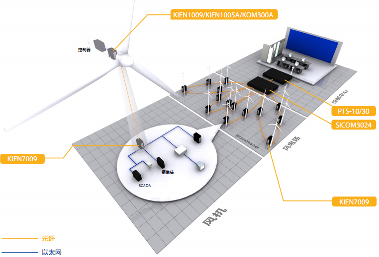 · 光口方案提供至風塔頂部以及冗余環(huán)網的光纖連接