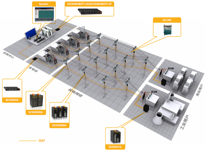 • 以變電站為區(qū)域骨干節(jié)點,構建環(huán)形接入層網(wǎng)絡,采用DT-Ring/DRP協(xié)議實現(xiàn)冗余,毫秒級故障恢復時間