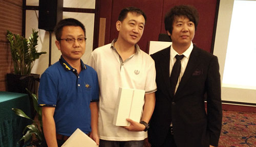 東土代理商唯思上總經(jīng)理胡文平先生和獲獎(jiǎng)(二等獎(jiǎng))客戶合影
