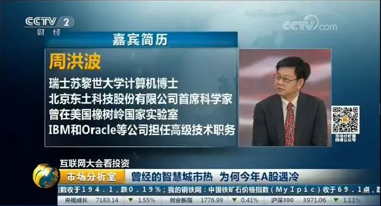 2017年12月7日,北京東土科技股份有限公司首席科學(xué)家周洪波就智慧城市熱點話題接受了CCTV2市場分析室欄目專訪。在節(jié)目中,周洪波博士重點介紹了智慧城市的定義,即基于ICT(Information and Communication Technology)技術(shù)對城市進(jìn)行智能化改造,并經(jīng)歷了數(shù)字城市、智慧城市、新型智慧城市及人工智能城市各個發(fā)展階段。周洪波博士提出,智慧城市的核心技術(shù)在于傳感器、機(jī)器視覺識別及物聯(lián)網(wǎng)技術(shù)。而對于智慧城市今后的發(fā)展趨勢,周洪波博士介紹了在剛結(jié)束的世界互聯(lián)網(wǎng)大會上,各大互聯(lián)網(wǎng)公司也都開始從人工智能及物聯(lián)網(wǎng)的角度參與到智慧城市的建設(shè)中來,預(yù)示著智慧城市即將進(jìn)入大規(guī)模發(fā)展階段。周洪波博士提出傳感器、低功耗廣域網(wǎng)及視覺識別技術(shù)將是未來智慧城市的熱點技術(shù),而根據(jù)我國目前發(fā)布的政策趨勢,智慧城管、智慧消防及智慧水務(wù)將會是智慧城市的熱點方向。