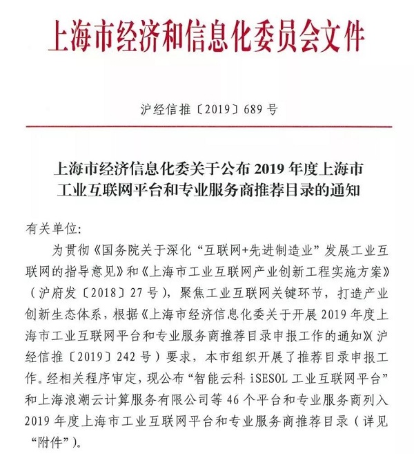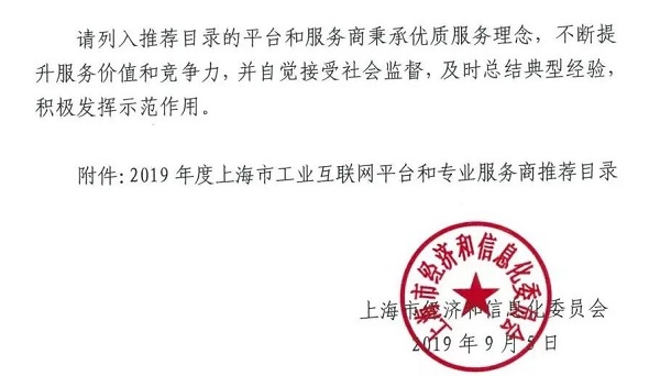 2019年9月,上海市經(jīng)濟(jì)信息化委關(guān)于公布了2019年度上海市工業(yè)互聯(lián)網(wǎng)平臺和專業(yè)服務(wù)商推薦目錄的通知,共計(jì)46個(gè)平臺和專業(yè)服務(wù)商列入2019年度上海市工業(yè)互聯(lián)網(wǎng)平臺和專業(yè)服務(wù)商推薦目錄。