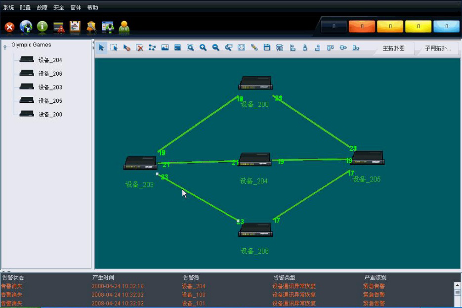 線路級網(wǎng)絡(luò)管理軟件可以通過SNMP協(xié)議實現(xiàn)SC、LC側(cè)的網(wǎng)絡(luò)交換機(jī)管理,顯示當(dāng)前線路網(wǎng)絡(luò)交換機(jī)的拓?fù)淝闆r并能夠?qū)崿F(xiàn)故障告警監(jiān)測,端口流量檢測及歷史告警記錄分析等。