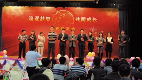 新春聯(lián)歡會在熱烈喜慶的音樂中拉開帷幕。首先,主持人帶領大家共同回顧了東土科技在2012年取得的驕人成績;接著,公司發(fā)展歷程中的一張張老照片在舒緩的背景音樂中呈現在全體員工的眼前,一幕幕感人的畫面歷歷在目,汩汩暖流涌上心田,正是東土人不畏艱難、不計得失、敢打敢拼的創(chuàng)業(yè)精神才推動東土的快速發(fā)展。為了表彰和鼓勵在2012年工作中表現優(yōu)秀的員工,公司董事長、總經理李平先生為2012年度優(yōu)秀員工頒發(fā)了獎杯及獎金,祝賀他們在2012年度取得的優(yōu)異成績。