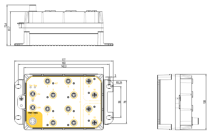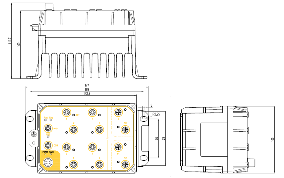 | 機(jī)械結(jié)構(gòu) | 外殼: 金屬 散熱方式: 自然冷卻,無風(fēng)扇 防護(hù)等級: IP65 尺寸: 100mm×177mm×111.7mm(H×W×D)帶散熱肋 100mm×177mm×73.4mm(H×W×D)不帶散熱肋 重量: <2Kg 安裝方式: 壁掛式 |