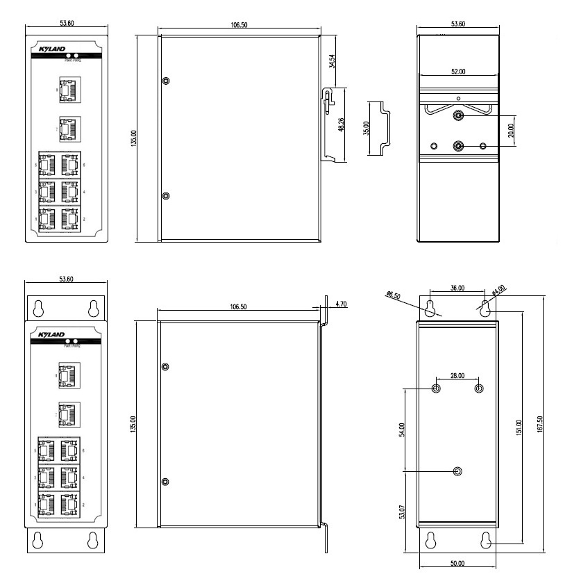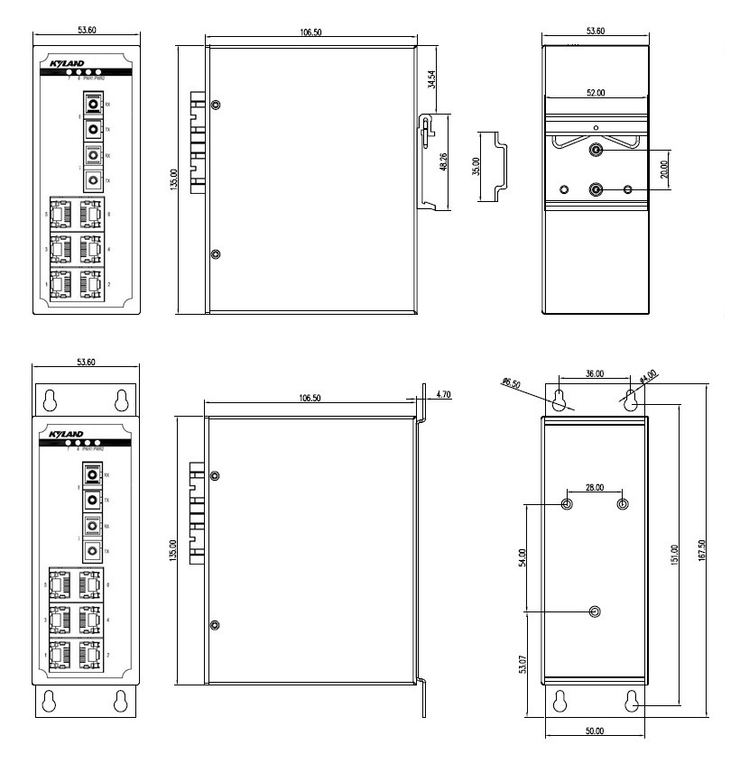 | 機(jī)械結(jié)構(gòu) | 外殼 金屬材質(zhì) 散熱方式 自然冷卻,無(wú)風(fēng)扇 防護(hù)等級(jí) IP40 尺寸 53.6mm×135mm×106.5mm (W×H×D) 重量 0.76Kg 安裝方式 DIN卡軌式或壁掛式 |