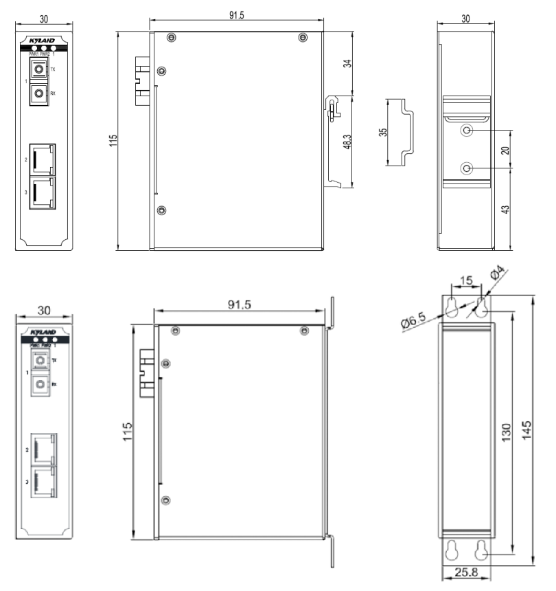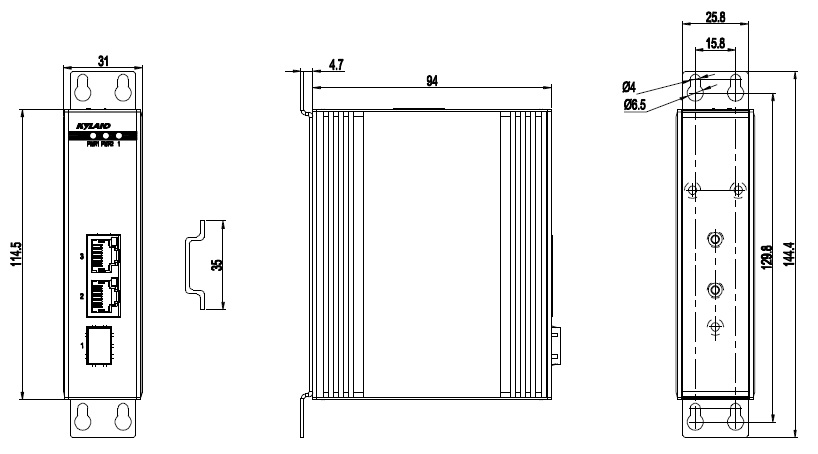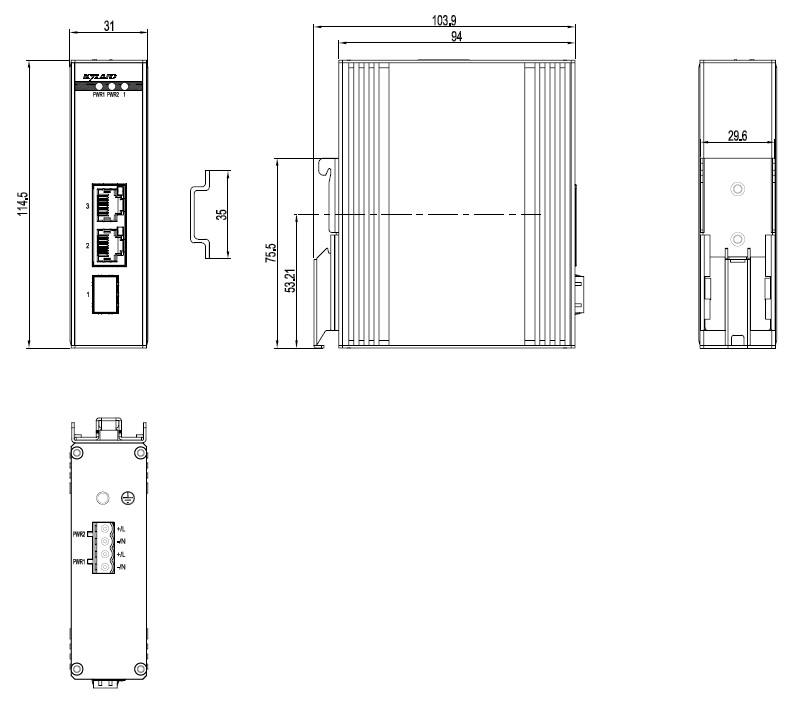 12-48VDC/18-30VAC,冗余輸入 31mm×114.5mm×94mm