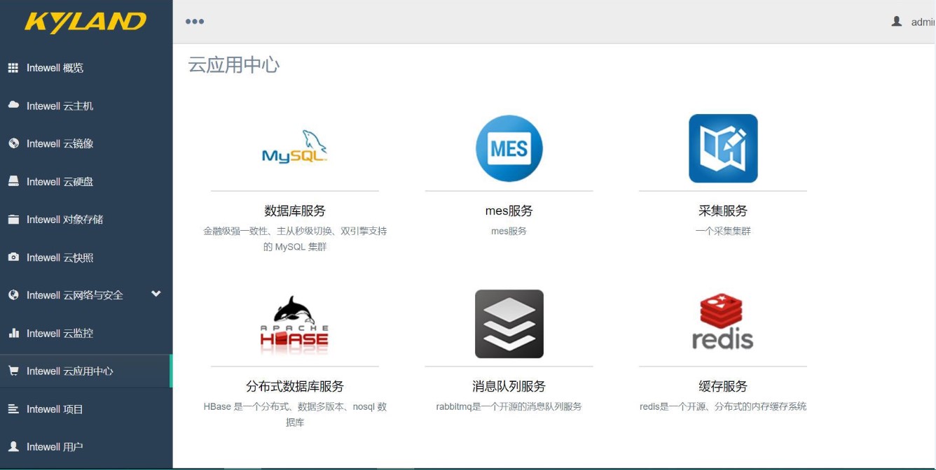 支持中間件及應(yīng)用一鍵式部署:用戶只需一鍵點擊應(yīng)用,即可獲取相應(yīng)資源,直接部署在云平臺中供使用。