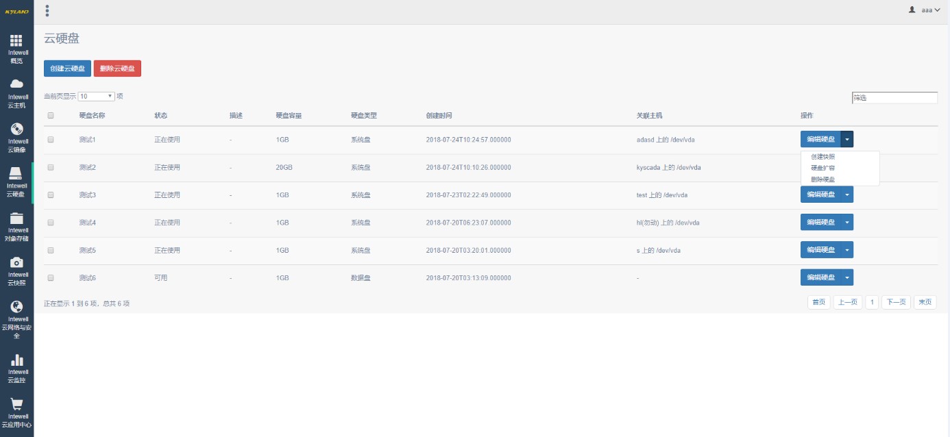 云硬盤 支持創(chuàng)建、刪除云硬盤