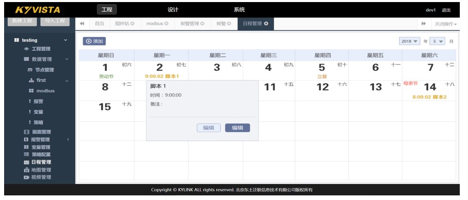 | 日程管理 | 支持用戶自定義時(shí)間表 支持一次性執(zhí)行、周期性執(zhí)行、定時(shí)循環(huán) ![]() |