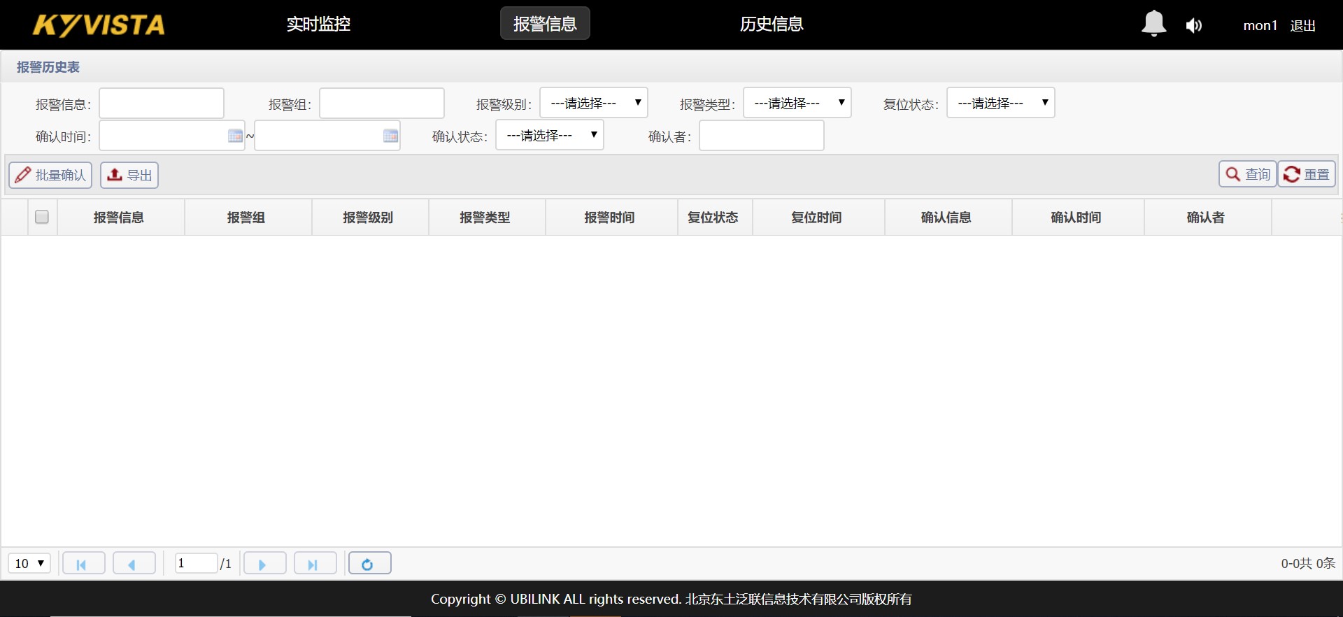 | 報(bào)警查詢 | 在瀏覽器上以列表的方式顯示報(bào)警 支持對報(bào)警按類型、級別查詢 支持用戶對報(bào)警確認(rèn)處理 ![]() |