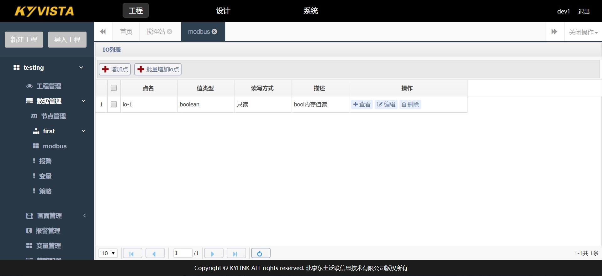 | 數(shù)據(jù)管理 | 支持kyGate網(wǎng)關(guān)接入配置管理 支持Modbus TCP協(xié)議配置 支持Modbus ASCII協(xié)議配置 支持OPC DA、OPC UA協(xié)議配置 支持Siemens TCP協(xié)議配置 支持Omron Fins TCP協(xié)議配置 支持?jǐn)?shù)據(jù)保存配置 支持開關(guān)量報(bào)警、限值報(bào)警配置 支持內(nèi)存變量定義 ![]() |